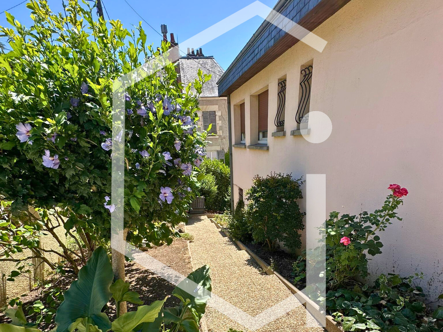 À l’extérieur, une cour avec jardinet à l’avant de la maison, et un jardin piscinable en contre-bas, parfait pour les moments de détente.