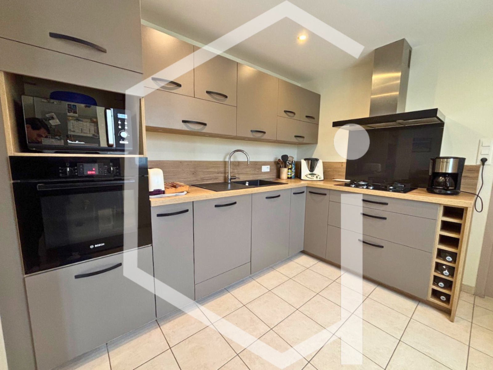 Elle se compose d’un spacieux salon cooconing, un séjour lumineux donnant sur une terrasse permetant de profiter pleinement des beaux jours, d’une cuisine fonctionnelle et moderne, d’un cellier, de quatre chambres, d’une salle de bains et de WC indépendants.