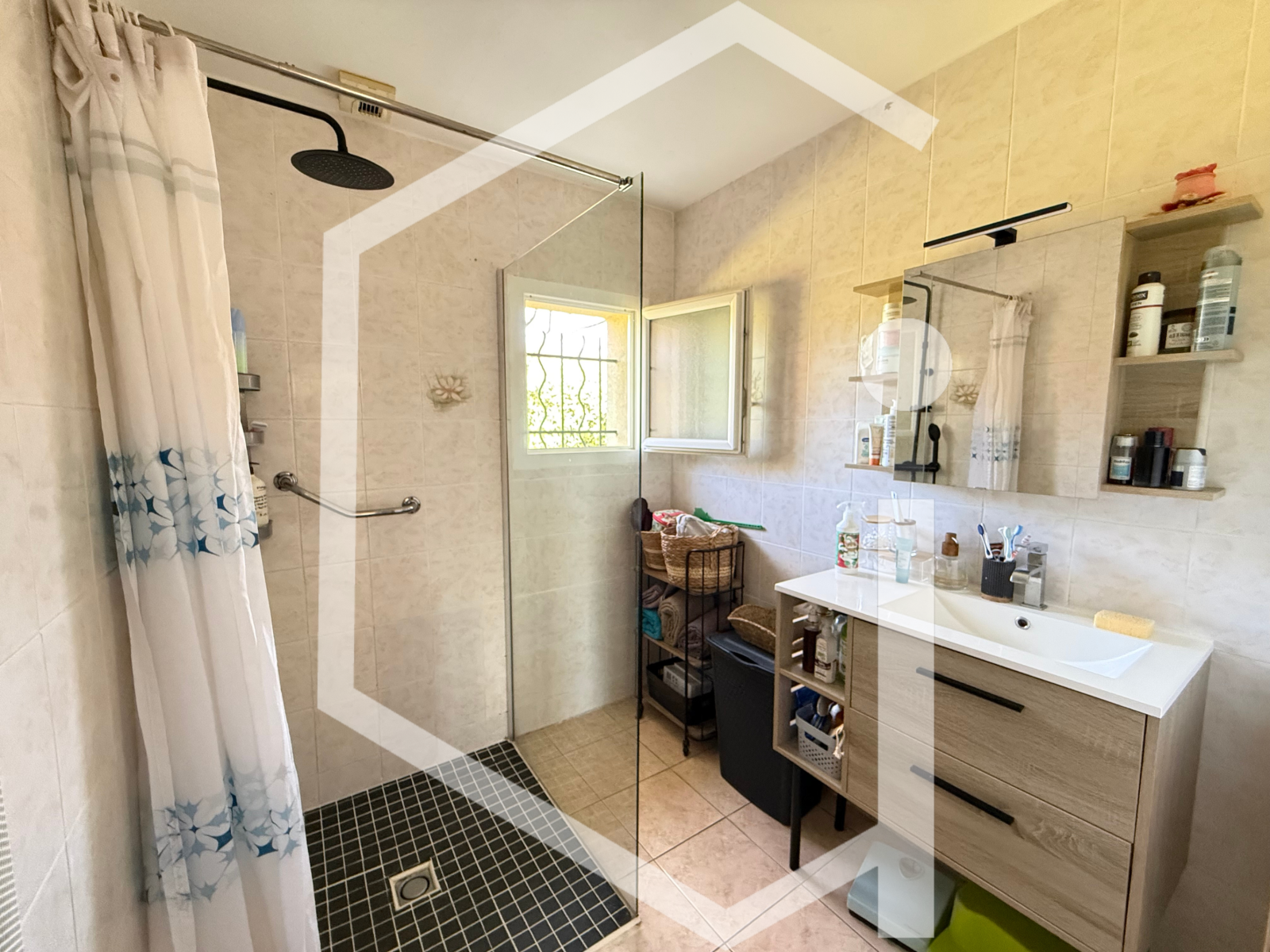 Au rez-de-chaussée, 2 chambres, dont une avec dressing et une salle d'eau avec wc offrent un quotidien fluide et confortable.