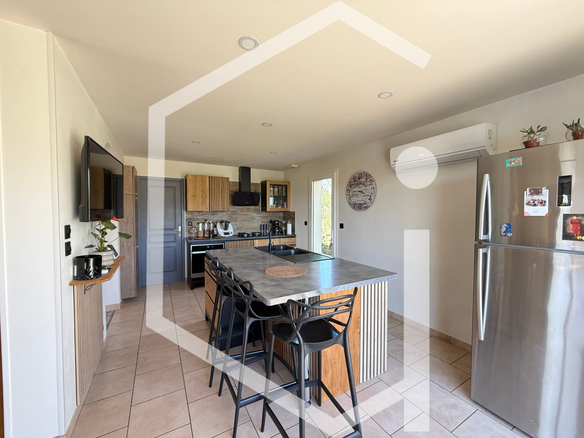Puis vient l'extérieur 1000 m2 de terrain clos, une piscine chauffée, des instants suspendus entre détente et convivialité. Garage de 42 m2, poêle à granulés, climatisation réversible: ici tout est pensé pour votre bien-être !