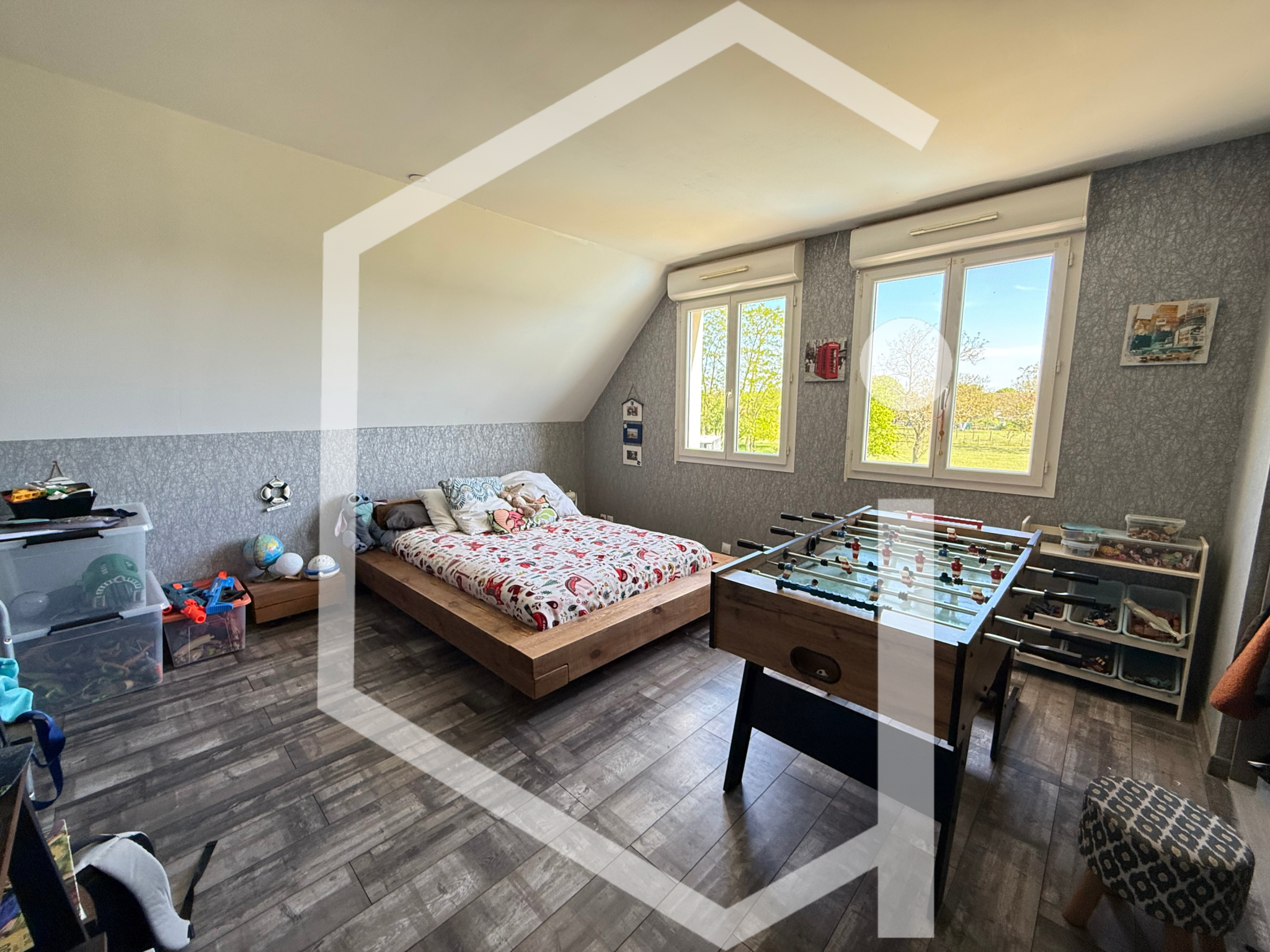 À l'étage, chacun trouve son espace avec 4 belles chambres et une salle d'eau avec wc, parfait pour la vie de famille.