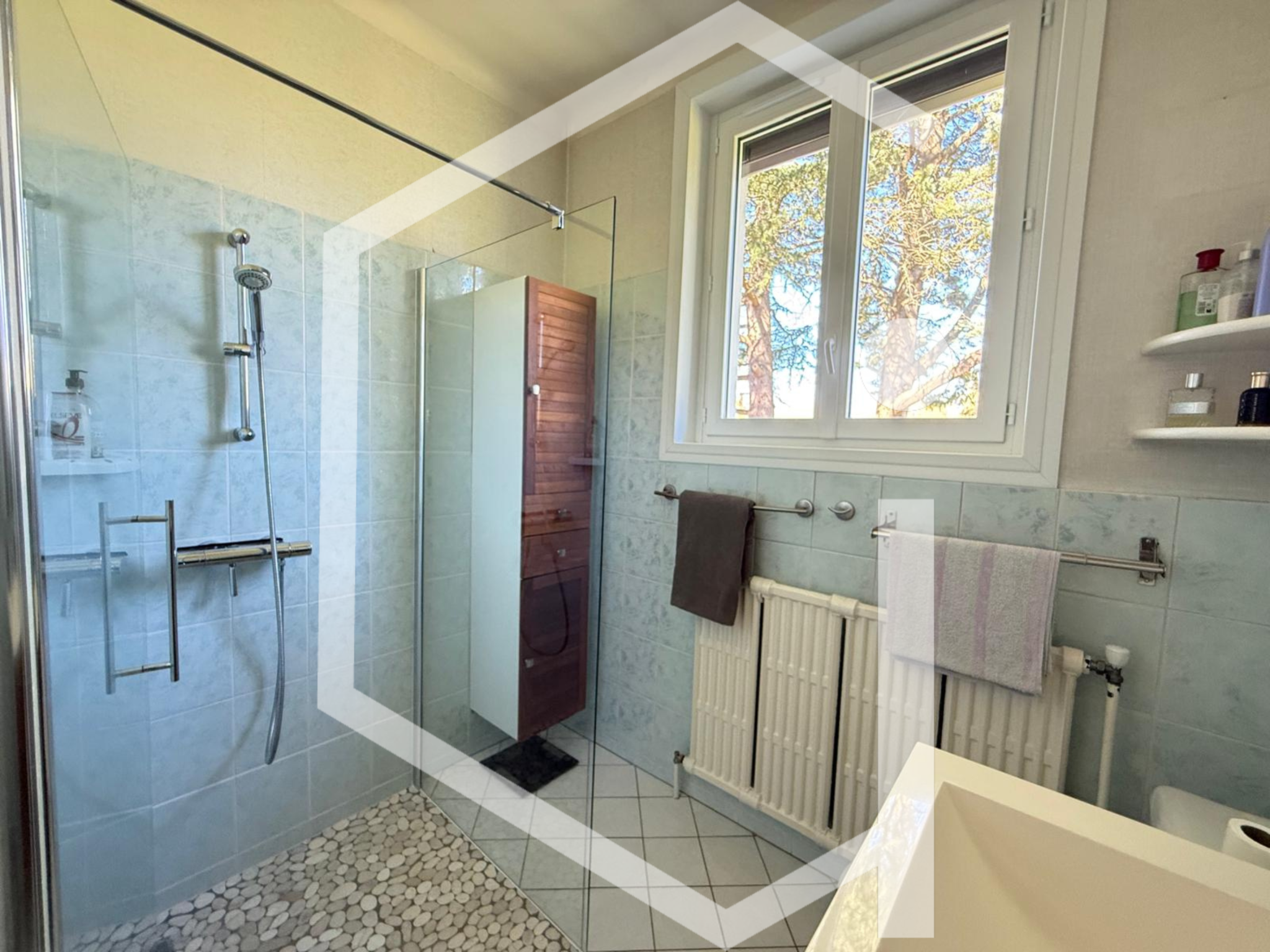 Elle se compose d’une entrée accueillante, d’une cuisine aménagée et équipée, d’un séjour/salon lumineux, d’un dégagement desservant un second salon, cinq chambres confortables, une salle d’eau avec WC, une seconde salle d’eau ainsi qu’un WC indépendant.