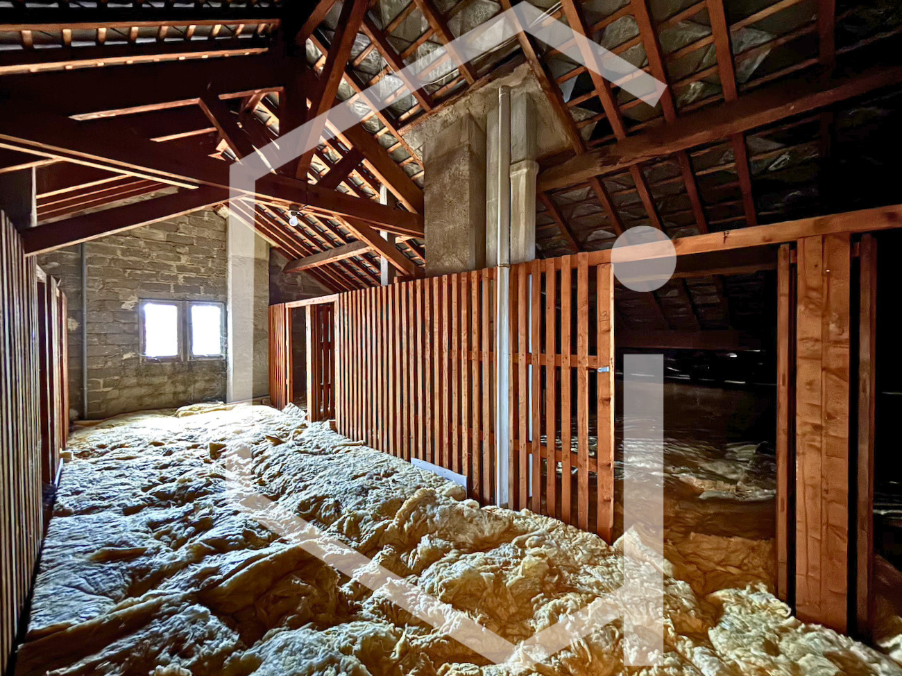 Un grenier couvrant l’ensemble du bâtiment offre un potentiel d’aménagement intéressant, avec la possibilité de créer deux logements supplémentaires sous réserve des autorisations nécessaires.