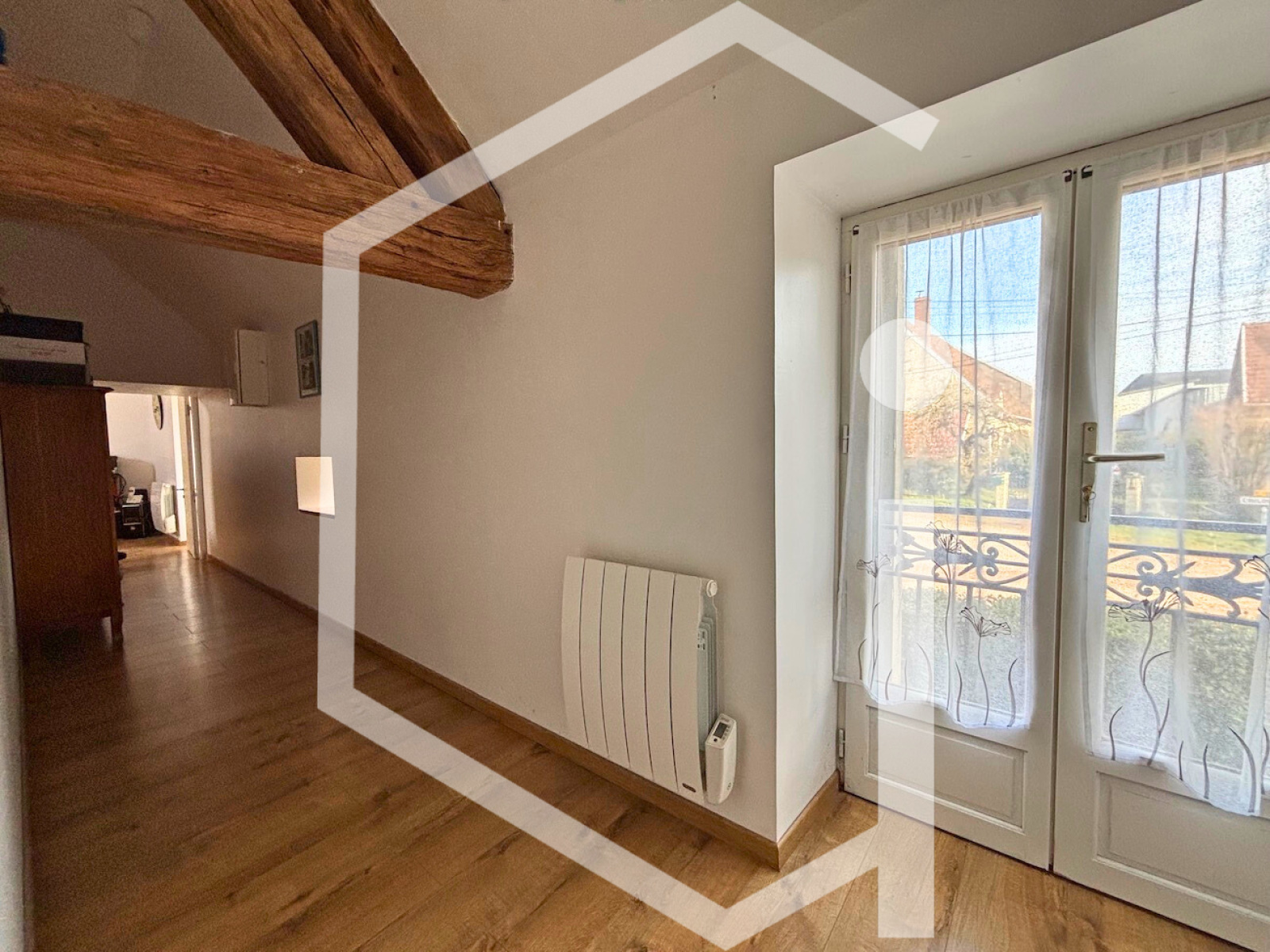 Un couloir desservant deux chambres aux volumes généreux